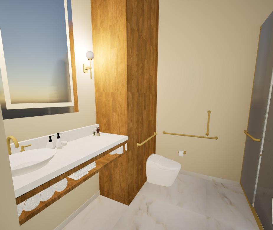 The restroom our team has designed is inclusive because it is fully ADA accessible, has gender neutral left and right restrooms, and has a ambulatory stall.
