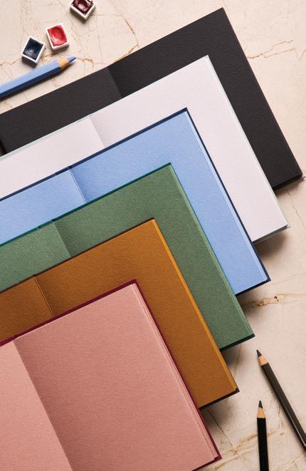 Creating each book is an exercise in precision and balance. Every Leporello is folded and assembled by hand, a delicate process that ensures the structure remains strong, yet is flexible enough to open and close repeatedly without wear. Minor variations between notebooks are not flaws but subtle signs of individual craftsmanship. At the centre of this process lies the Cromia paper, the production of which closely mirrors traditional papermaking –hand-intertwining the fibres creates exceptional stability and a rich tactile quality. Before its release, the paper underwent extensive testing in our laboratories. We worked with dry media such as pastels and chalks, then with acrylics and light watercolour washes, refining the surface until it performed perfectly. Feedback from trusted artists guided those refinements and the colour palette was shaped through that same collaboration.
