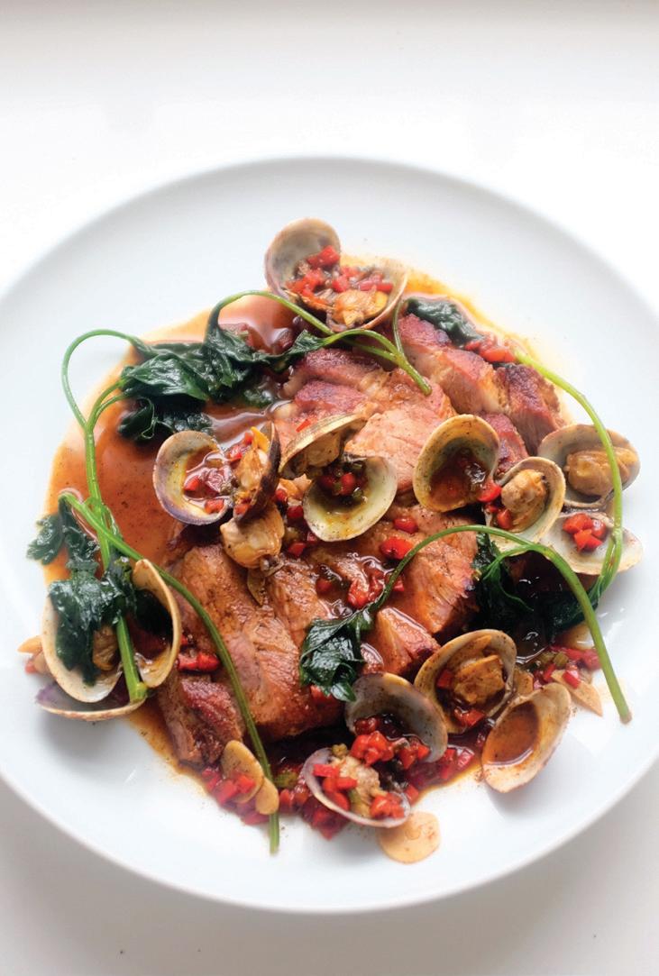Cut the pork steaks into thick slices and divide between bowls or deep plates. Spoon the clams, parsley and lots of juices over the top.