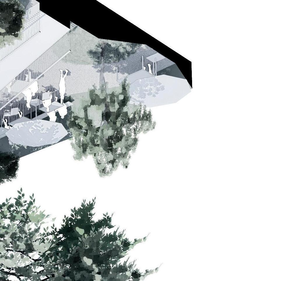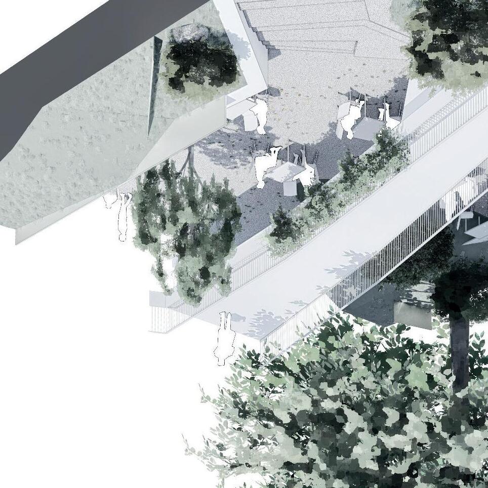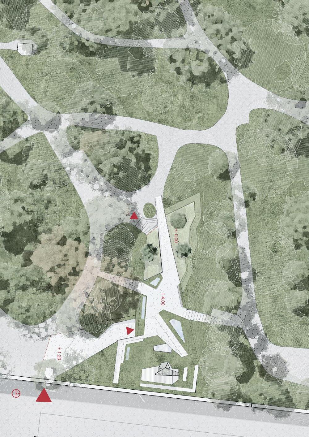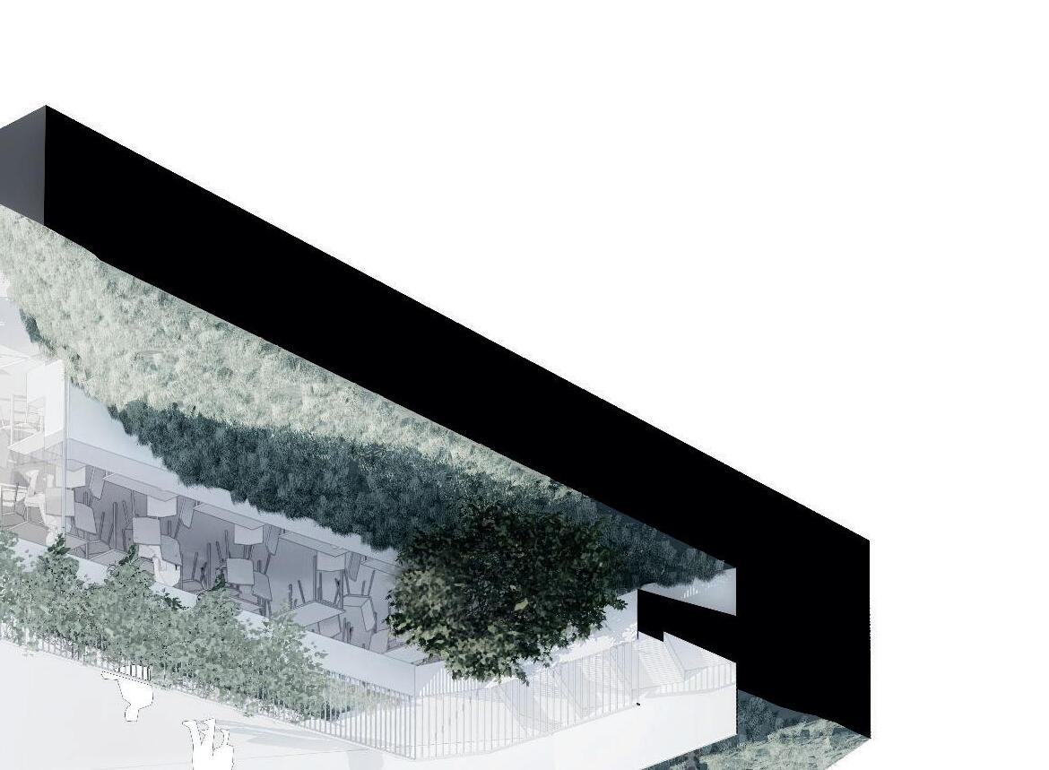 The idea was to create the new Hofgarten Cafe as part of the existing landscape. The value of nature was important so we decided to plan a second park roof, above the Hofgarten cafe, which different joints lead next to.