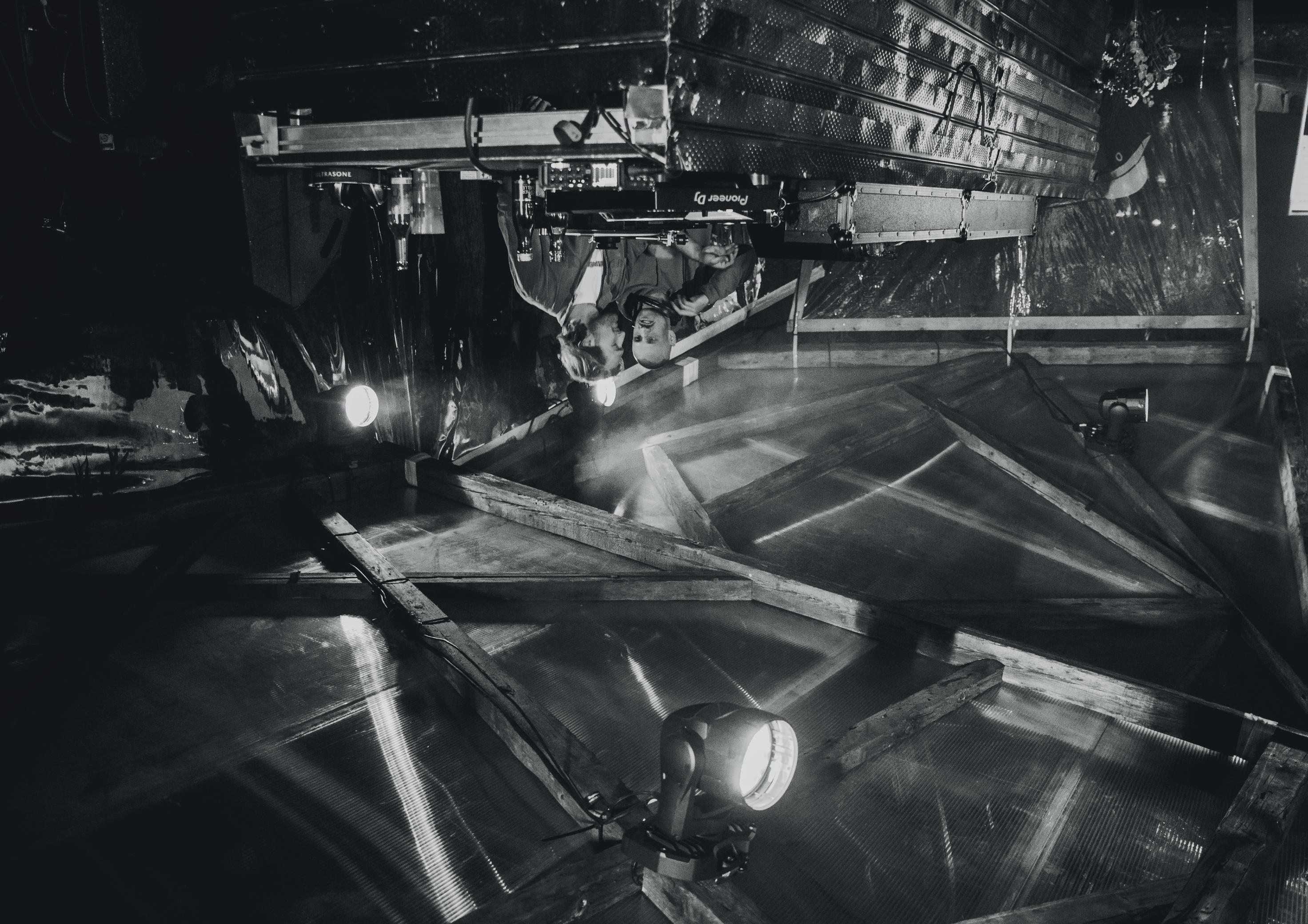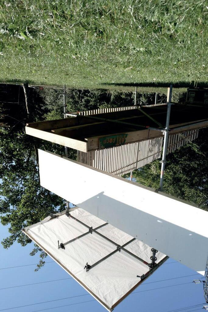 Halle 5, located in the industrial area of St. Bartlmae, was initially rented as a storage space for our festival. However, our long-term vision was to utilize its spatial potential for events through a second plateau. Today, Halle 5 serves as a storage facility for many collectives and is also used for events every weekend. It houses a woodworking workshop, a studio, and an office. There has even been a wedding held here, and a medieval reenactment group trains in the hall during the day.