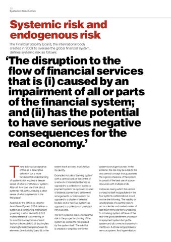 Systemic risk and endogenous risk The Financial Stability Board, the international body created in 2009 to oversee the global financial system, defines systemic risk as follows: