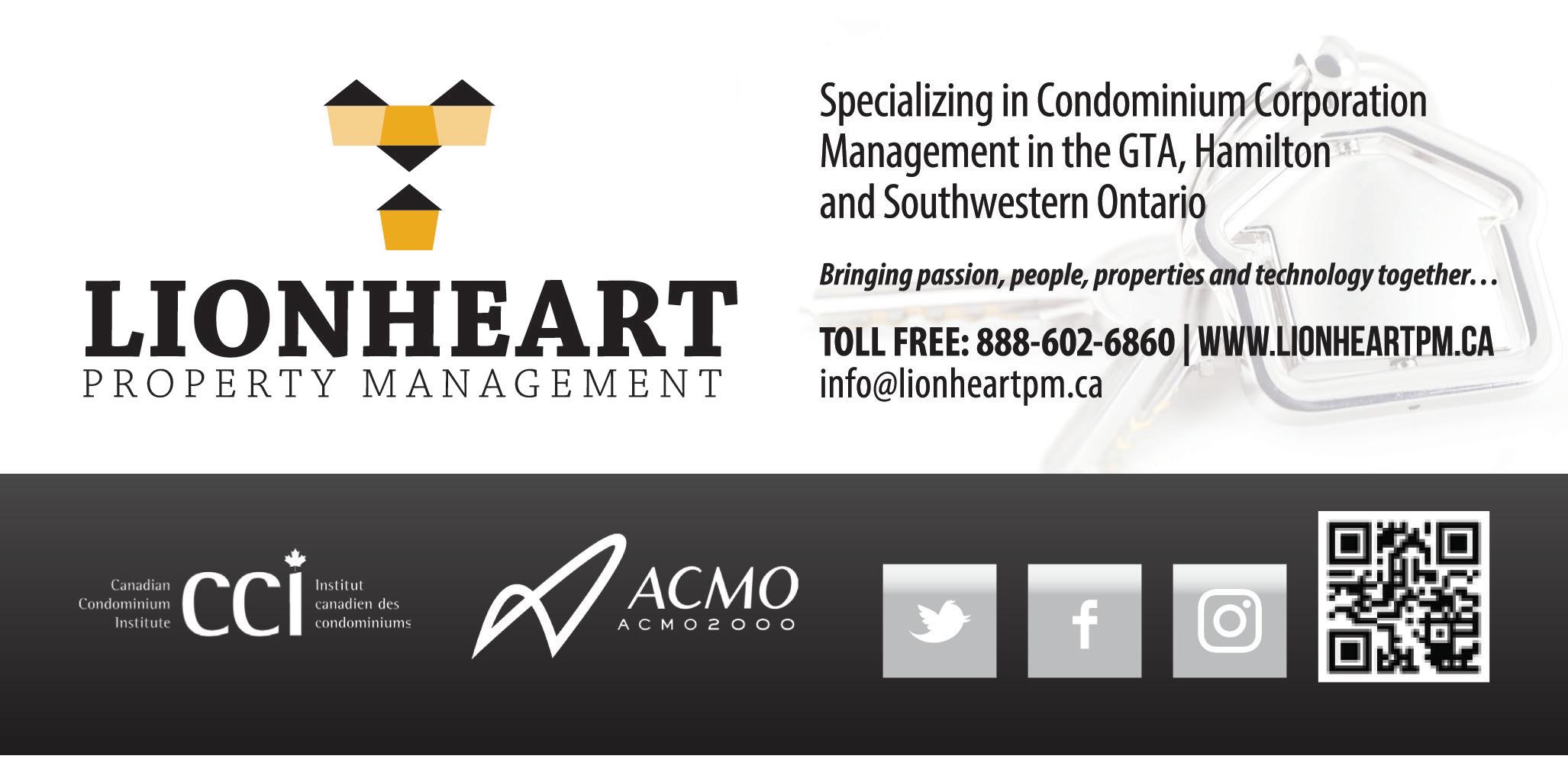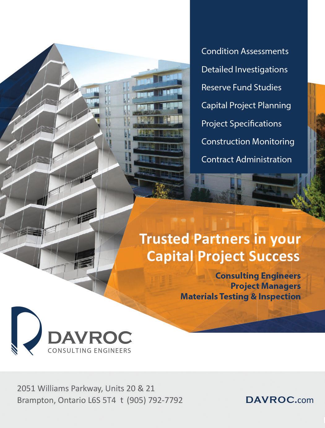 C V CONDOVOICE WINTER 2022 55 COMPANY PAGE A. R. Consulting 51 Atrens Management Group Inc. 35 Atrens-Counsel Insurance Brokers 52 Berkley Property Management Inc. 15 Brown & Beattie Ltd. 42 Brunco Insulation Ltd. 36 Canlight 42 Cion Corp 46 CityTowers Property Management Inc. 4 CondoSTRENGTH 32 CondoVoter 50 Criterium-Jansen Engineers 10 Crossbridge Condominium Services Ltd. 36 Davroc & Associates Ltd. 22 Davroc & Associates Ltd. 55 Deacon, Spears, Fedson & Montizambert 31 Deo Condominum Lawyers Inside Front Cover Duka Property Management Inc. 26 Dynamic Property Management 34 FirstService Residential Advertorial 48 Fogler Rubnioff LLP 39 COMPANY PAGE Gardiner Miller Arnold LLP 57 Horlick Levitt Di Lella LLP Back Cover John Tan CPA Professional Corporation 55 KayCondo GC 9 Keystone Fitness Equipment Inc 52 Lionheart Property Management 18 Marinus Group 55 Mr. Billiard International 44 Nadlan-Harris Property Management Inc. 28 PAC Building Group 51 PropertyWright Management Inc. 54 RJC Engineers 16 Samsonshield Inc. 44 Shiftsuite 14 Sider Property Management Inc. 50 Suncorp Valuations 15 Synergy Partners Consulting Ltd. 50 Trinity Engineering & Consulting Inc. 18 Wei CPA Professional Corp. 50 WhiteRose Janitorial Services Ltd 6 Wilson Blanchard Management 16