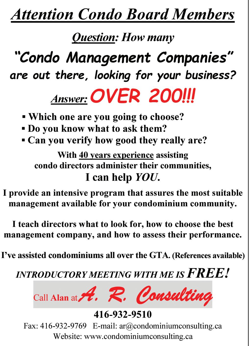 While not all of recommendations made by the Auditor General’s Office have been fully implemented, bringing about change requires time and effort, and with each continuing day the condominium industry continues to grow in a direction that is beneficial for all stakeholders.