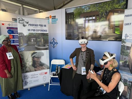 EarlyInterventionBlended-CarePods(WellbeingMonitorLtd)–Portable clinicsembeddedintocommunityspaces,designedtoovercomebarriers suchasruralisolation,lowdigitalliteracy,orsensoryloss.Theyfeature multilingualimmersiveVRonboardingalongsidepreventativescreenings. ModularPods(E3DesignLtdwithTHRIVE)–Flexible,reusablestructures builtfromrecycledmaterials,designedforrapidassemblyinWales.Easyto cleanandrebrand,theysupportinfectioncontrol,reduceenvironmental impact,andcanbeadaptedtomultiplecaresettings.