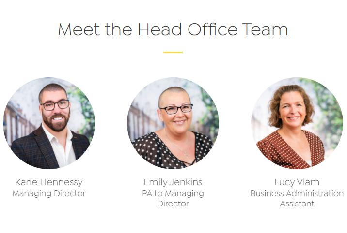 Staff photos are cropped within a circle and presented with name and job title – on a scrolling carousel if there are more than 4 members of staff within a branch.