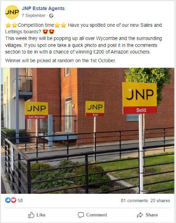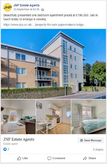 JNP’s social media posts are a mixture of property details using multiple images or video, competitions, and good news stories from colleagues at the various JNP branches – awards, good reviews and customer feedback.