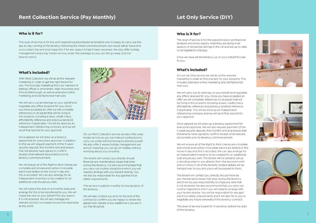 CTA boxes at the foot of each page feature people, interiors and product images utilising the secondary colour palette.