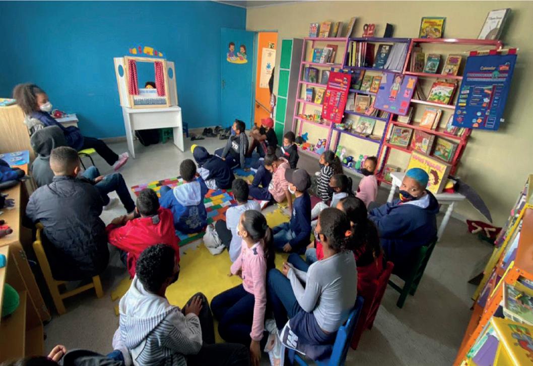 O acervo da biblioteca inclui mais de 400 livros infantis, abrangendo diversos tipos de narrativas, gêneros textuais, temas e audiobooks, além de livros para a formação dos educadores e profissionais envolvidos. O projeto oferece uma gama de atividades, como contação de histórias e representações artísticas, para proporcionar às crianças uma verdadeira viagem pelo universo literário.