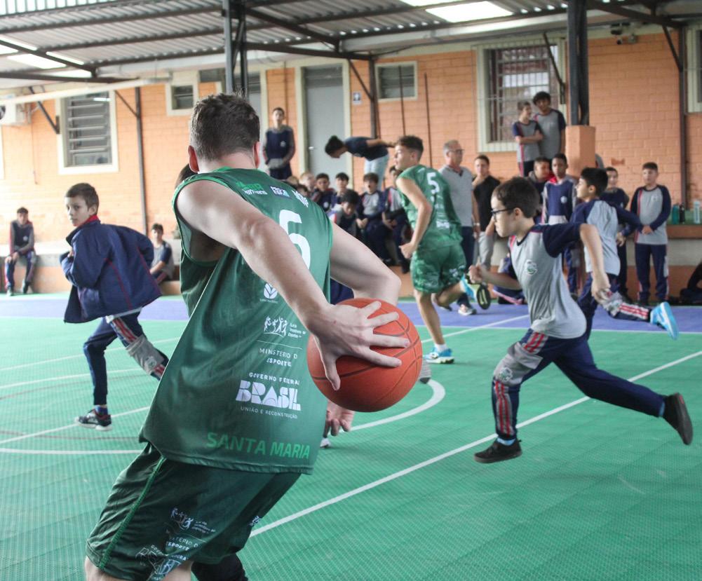 A fase de iniciação ao esporte basquetebol será feita com turmas de 9 a 12 anos em quatro escolas municipais com a aprendizagem inicial dos sistemas e fundamentos básicos do basquetebol, oportunizando aos jovens a aprendizagem de vários conteúdos do basquetebol. Serão oferecidas duas aulas semanais com duração de 1h30.