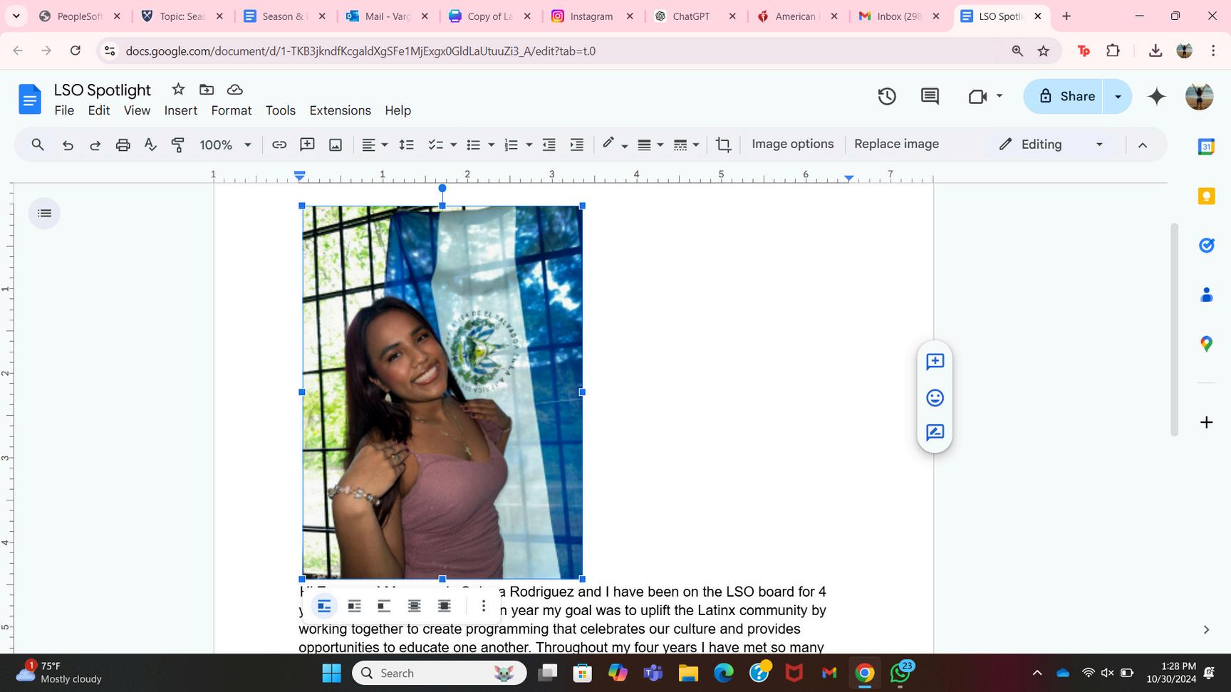 “”Hi Everyone! My name is Quiana Rodriguez and I have been on the LSO board for 4 years. Starting from my freshman year my goal was to uplift the Latinx community by working together to create programming that celebrates our culture and provides opportunities to educate one another. Throughout my four years I have met so many amazing people that care for our community and my goal this year is to use that knowledge and carry it throughout my leadership this year as President.