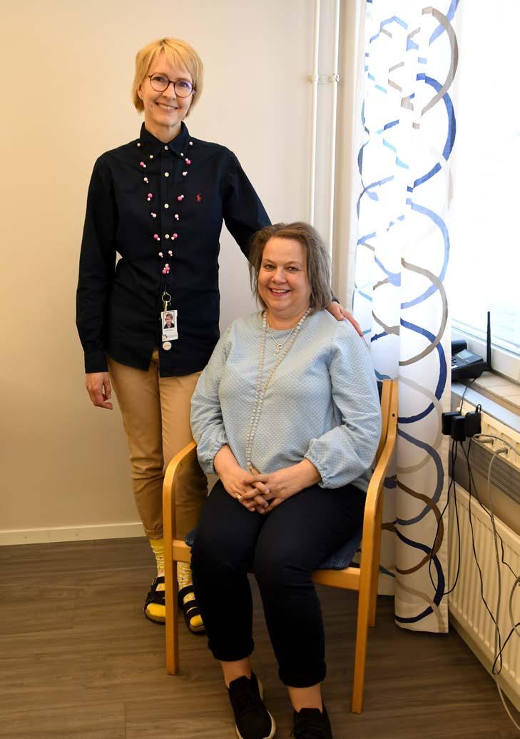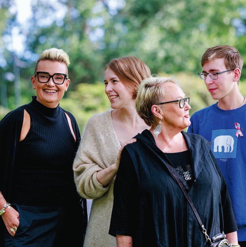Sairastaminen teki loven talouteen, mutta ei kaatanut yritystä. Merjalla oli mahdollisuus jatkaa työtään, kun hoidot olivat takana ja voimat palanneet. Työn määrää hän on parannuttuaan pyrkinyt hiemaan säännöstelemään. Vaikka työ ja asiakkaat ovat hänelle tärkeitä, elämässä on muutakin, jolle on annettava aikaa. Viikkojen yhtämittaisia lomia hän ei edelleenkään harrasta. Mahdollisuus järjestää viikon matka toteutui kesällä 2025. Hän matkasi pojan kanssa Tanskaan, jossa hän asui pari vuotta nuoruudessaan. Mikä auttoi jaksamaan? – Olen tukeutunut lähipiiriini. Olen mennyt eteenpäin vaihe kerrallaan enkä ole kokenut kaipaavani esimerkiksi mitään järjestettyä ryhmä- tai muuta toimintaa. Minulla on ollut vertaistukea ja mahdollisuus jutella huolistani myös terveydenhuollon ammattilaisystävieni kanssa. On kuitenkin hienoa, että erilaista tukea on mahdollista saada sekä sairaalassa että syöpäyhdistyksen kautta. Monet hyötyvät mahdollisuuksista käydä kokemuksiaan läpi ja saada vertaistukea ryhmistä. Oma reseptini oli kai se, että halusin elää mahdollisimman normaalia elämää koko ajan. Siihen oli tietenkin sovitettava kaikki syövän ja sen hoitojen mukanaan tuomat asiat, kuten aikataulut ja esimerkiksi hiusten lähtö. Merja Sahlberg on viehättävä ja huoliteltu nainen. Peruukin hän hankki jo hyvissä ajoin ennen hiusten lähtöä ja valitsi sen huolella. Se ei kuitenkaan tuntunut ihan omalta. Lopputulos oli muiden mielestä vähintään onnistunut. Merja oli kuitenkin helpottunut, kun omien hiusten aika lopulta koitti. Alun hento kiharrus on vaihtunut tyylikkäästi raidoitettuihin suoriin hiuksiin. Omat hiukset ovat nyt takaisin. – 2020-lukuni alkupuoli oli raskasta aikaa. Koronan lisäksi iäkkäät läheiset –äiti ja läheinen täti, josta olin paljon huolehtinut – kuolivat, ja sitten sairastuin. Kun olen menetyksistä päässyt eteenpäin, on vähän voittajaolo. Hoitojen jälkeisen ensimmäisen kesän olin onnen huumassa toipumisestani. Jostain sitä voimaa kaiken kestämiseen vain tuli. Tunnistan kyllä itsessäni sen, että saatoin joskus Tyksissä esittää vähän Risto Reipasta tyyliin ”vanha hoitaja kyllä pärjää”, olenhan aiemmin itsekin työskennellyt syöpäklinikalla. Falskata ei kuitenkaan tarvinnut. Sain kaiken sen avun, jota tarvitsin. – Pahinta tuntui aina olevan odottaminen ja tulevan pelko. Kun hoidoissa edettiin, alkoi kehittyä luottamus siihen, että eteenpäin mennään.