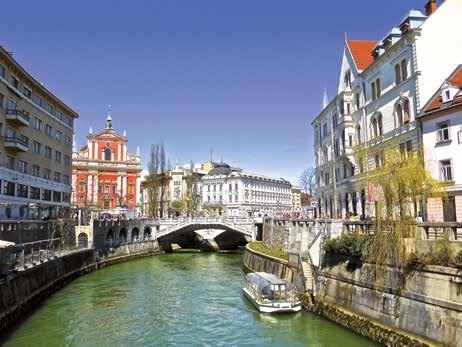 Ljubljanan lentokentälle klo 8.45. Bussi ja suomalainen opas ovat vastassa. Aamiaisen jälkeen tehdään kävelykierros Ljubljanassa, joka on yksi Euroopan pienimmistä pääkaupungeista. Sen vanhakaupunki tarjoaa oopperatalon, barokkirakennuksia, vanhan raatihuoneen, Pyhän Nikolauksen katedraalin, lukuisia museoita ja gallerioita sekä Ljubljanan linnan upeine näkymineen. Kierroksen aikana nähdään myös Josip Plecni kin suunnittelema maailmankuulu Kolmoissilta sekä viehättäviä puistoja. Kierroksen päätteeksi nautitaan lounas ja lähdetään tunnin mittaisel le jokiristeilylle, jonka jälkeen majoi tutaan B&B Hotel Ljubljana Parkiin. Hotelli sijaitsee saneeratussa rakennuksessa Ljubljanan keskustan alueella, kävelymatkan päässä historiallisista nähtävyyksistä. Hotellissa on kaikki mukavuudet sekä ilmainen langaton lähiverkko. Maukasta ruokaa ja trendikkäitä juomia voi nauttia hotellin ravintolassa ja baarissa. B&B Hotel Ljubljana Park, Tabor 9, 1000 Ljubljana.
