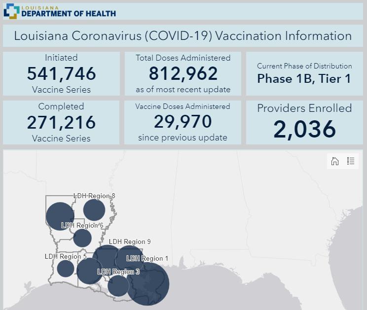 Source: Louisiana Office of Public Health, Region 6 (Central Louisiana), Regional Administrator/Medical Director, David J. Holcombe, MD, MSA, Feb. 22, 2021.