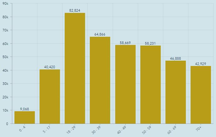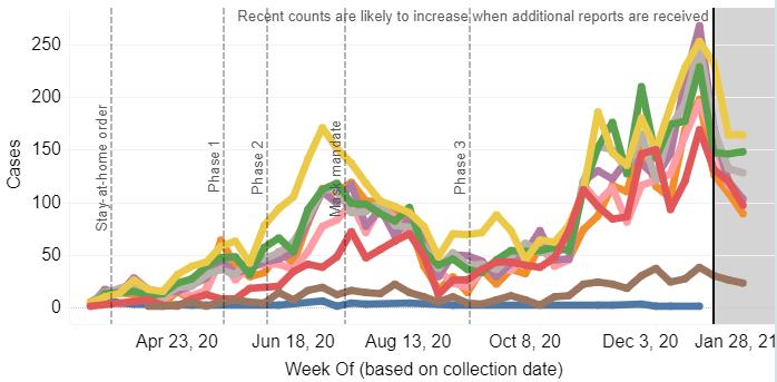 COVID-19 cases statewide by age group as of February 3, 2021.