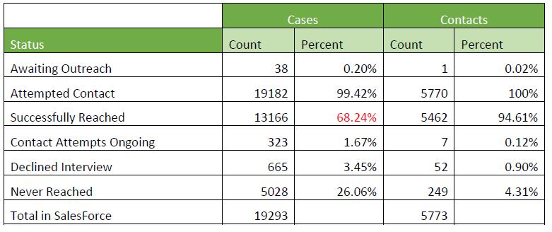 Covid-19 contact tracing effectiveness as of January 21, 2021. Source: Louisiana Office of Public Health, Region 6 (Central Louisiana), Regional Administrator/Medical Director, David J. Holcombe, MD, MSA, Feb.. 4, 2021.