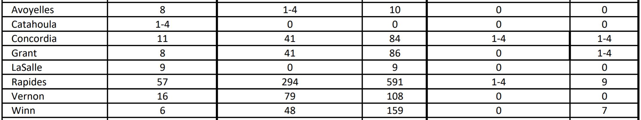 Source: Louisiana Office of Public Health, Region 6 (Central Louisiana), March 1-7, 2021.