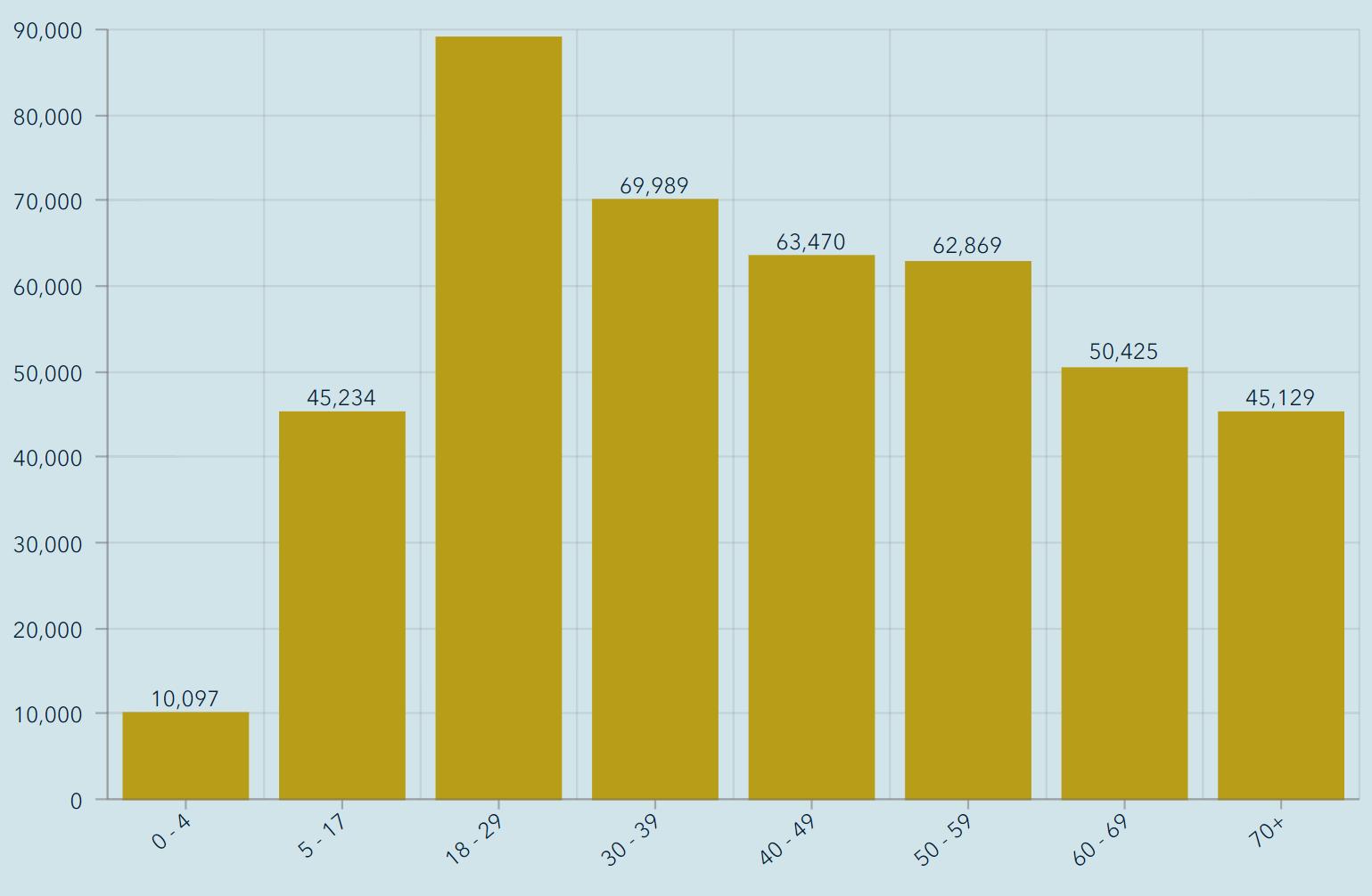 COVID-19 cases statewide by age group as of March 12, 2021.