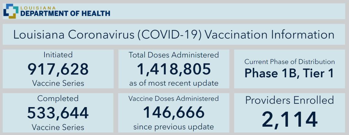Source: Louisiana Office of Public Health, Region 6 (Central Louisiana), Regional Administrator/Medical Director, David J. Holcombe, MD, MSA, March 15, 2021.