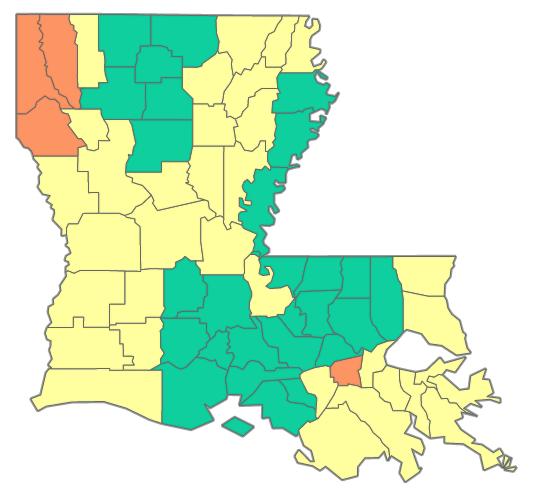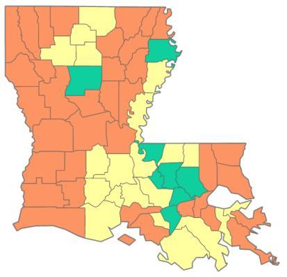 COVID-19 statewide risk by parish over time. Source: Louisiana Office of Public Health, September 21, 2022.