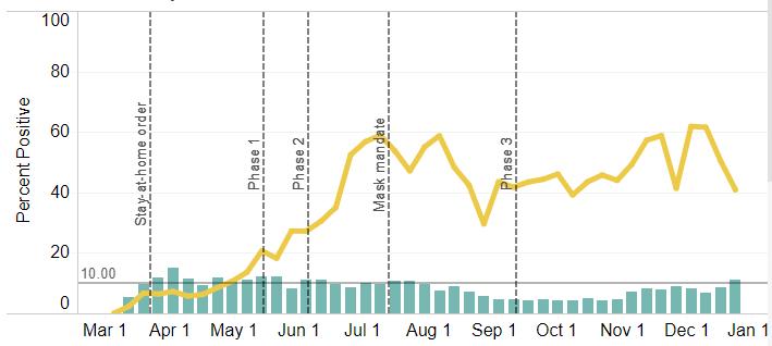 COVID-19 percent positive and test volume in Region 6 as of January 7, 2021.