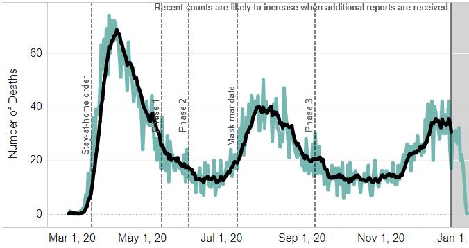 COVID-19 deaths by date of death statewide as of January 7, 2021.