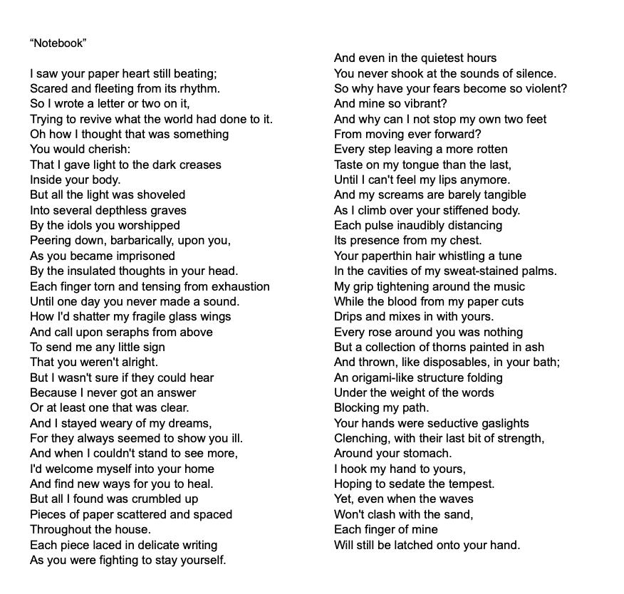 The breeze blew softly as the sun went down on a warm August night. I sat there on a rock along the beach wondering what it would be like to be able to explore the ocean. I always found it so fascinating. Since I can remember I've always been drawn to the ocean. I grew up coming to the beach every day with my mom. She was a marine biologist, so it makes sense. I lost my mom when I was 13. She meant the world to me.
