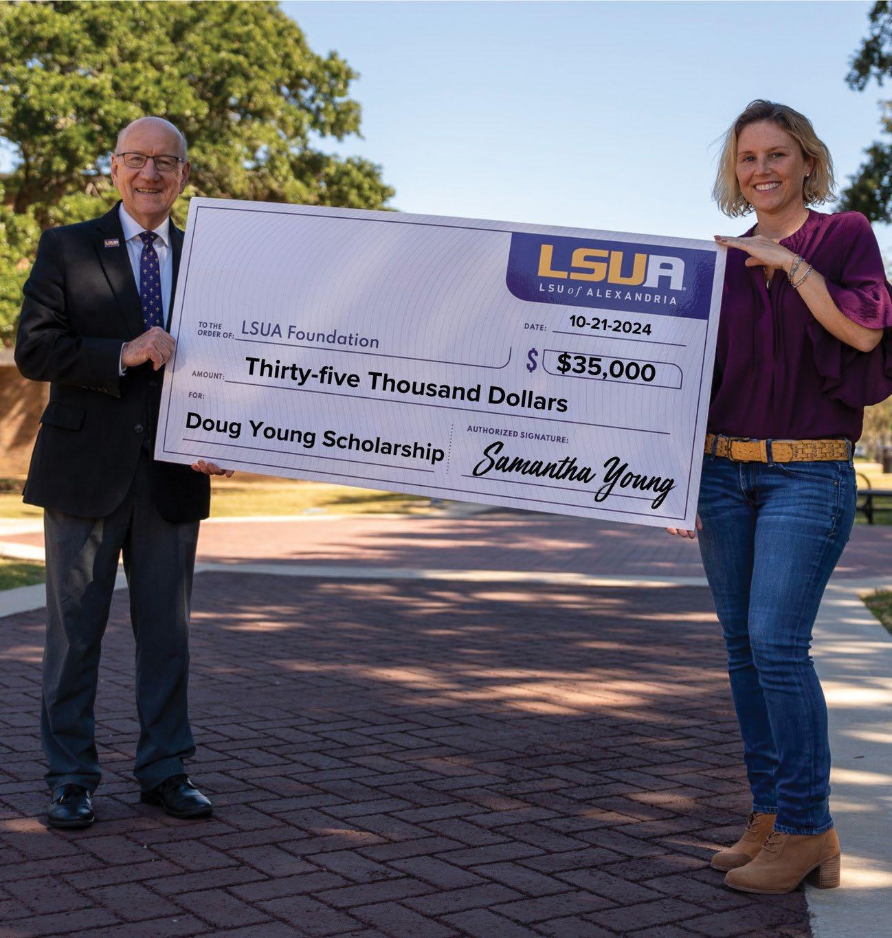 The LSUA Foundation received an additional $35,000 from the Doug Young Memorial Golf Tournament to bolster the Doug Young Memorial Scholarship, an endowed award established in 2015 through Marcia Young’s initial $25,000 donation. The scholarship honors Doug Young, a respected businessman, devoted family man, and dedicated community leader who began his college journey at LSUA before transferring to LSU in Baton Rouge, eventually earning a degree in economics. Young served as a social worker and probation officer for Louisiana for three decades and, in 1976, co-founded Doug Young Nursery with Marcia, fulfilling a lifelong dream.