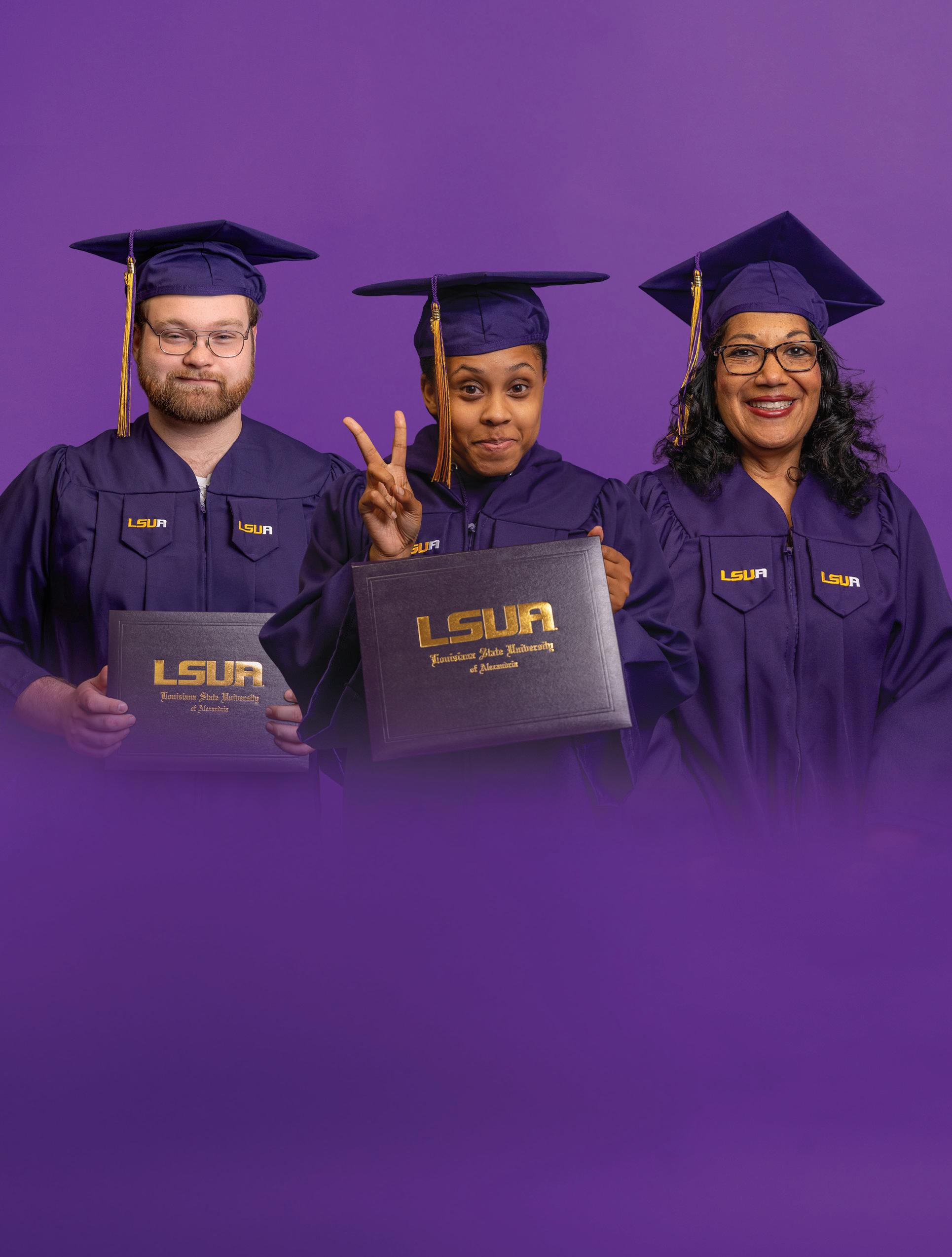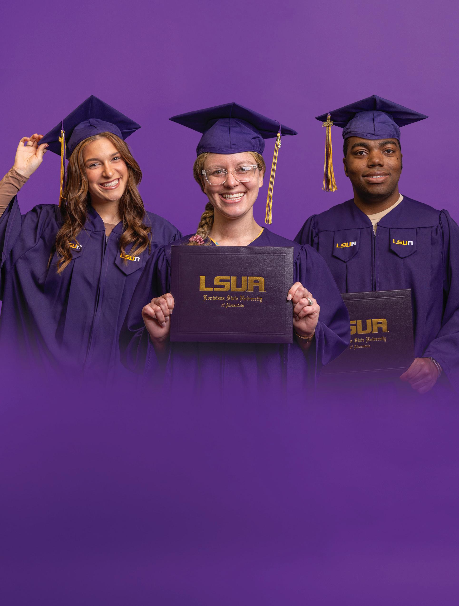 Congratulations on reaching this remarkable milestone! Completing the requirements for a college degree is an achievement that reflects not only your perseverance and dedication but also the sacrifices and support of your family and loved ones. Your ability to meet challenges head-on and pursue your dreams with focus and passion is truly inspiring. We are proud to recognize each graduate for rising above and representing LSUA’s best and brightest.