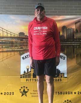 Herman O. Kelly, Jr., a member of the Crawfish Aquatics Swim Team, participated in his third National Senior Games, representing Louisiana in the swimming competition. He finished 25th, 21st, 19th, and 18th in four events with a personal best time in the backstroke competition.