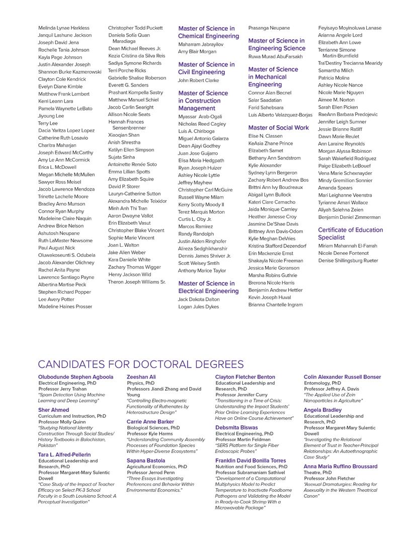 J. Ofori Agboka, Carnation, Wash. Mark Kent Anderson, Jr., Monroe, La. Michael B. Bethea, Madisonville, La. Karen Brack, San Diego, Calif. Paul Bu one, Baton Rouge, La. Corey Foster, Lake Charles, La.