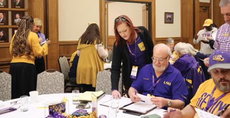 Chapter officers from across the country gathered at Lod Cook Alumni Center in January for the annual Chapter Summit. The workshop included sessions with campus experts, including Danny Barrow, vice president for Enrollment Management & Student Success; Phil Verpil, director of LSU Admissions; Olivia Cassin, associate director at the Office of Admissions; Lindsay McCrory, manager of Parent & Family Programs; Merdia Sanders, associate director of Transition and Student Success; Ricky Bryant, coordinator of Communications, Marketing & Events at Residential Life; Leighann Westfall, LSU Athletics Executive Director of External Relations; and Mario Garner, chair of the LSU Alumni Association Board of Directors. Also on the agenda was a group tour of local Oxbow Distillery and various sporting events, including LSU Gymnastics meet and Men's Basketball game.
