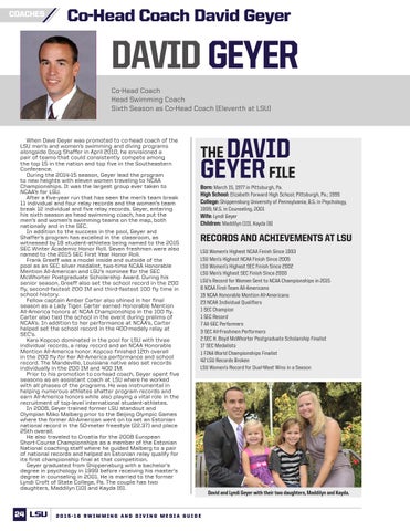 DAVID GEYER Co-Head Coach Head Swimming Coach Sixth Season as Co-Head Coach (Eleventh at LSU)