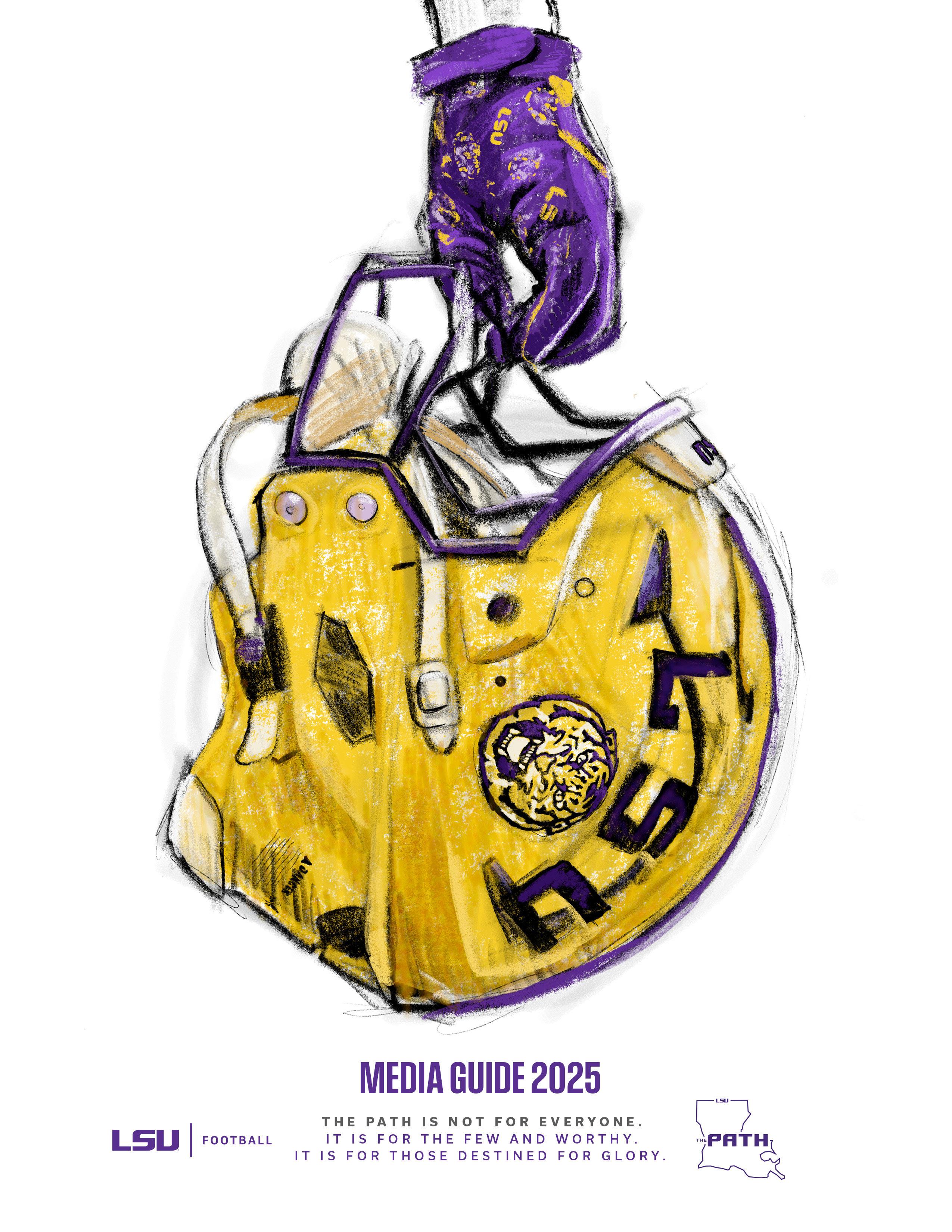 In recent years, some information that was once printed exclusively in LSU Athletics media guides has been moved to the department’s official website, LSUsports.net. Visit the football homepage to find such information. Additionally, aliases (such as LSUsports.net/football) have been placed throughout the 2025 LSU football media guide to redirect website users to the expanded content that’s available and constantly updated on LSUsports.net.