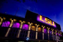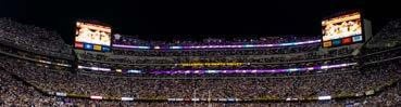 A total of 11 LED ribbon boards – totaling more than 2,350 linear feet – were installed on the fascia on the east, west and south sides of Tiger Stadium. The new digital technology produces animations, graphics and game statistics.