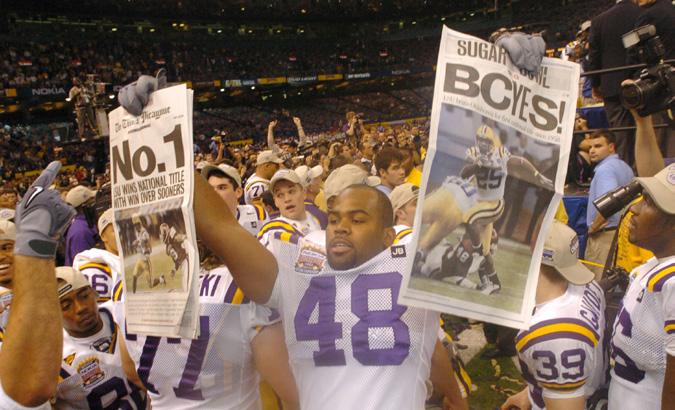 Though already considered one of the most raucous stadiums in all of college football, the 2003 season saw Tiger Stadium take it to another level during LSU’s national title run, as the team, along with the fans, captivated the national media almost on a weekly basis. CBS televised Matt Mauck’s last-minute game-winning pass to Skyler Green against Georgia before a crowd of 92,251, while ESPN was on hand for a dominating 31-7 victory over Auburn.
