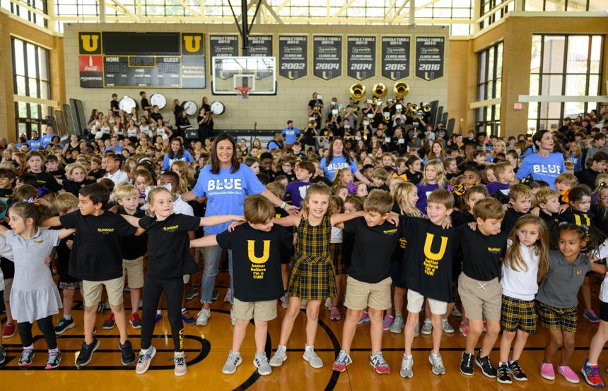 The Pennington McKernan Gymnasium was host to an especially enthusiastic pep rally on Friday, September 16. Students from kindergarten through 12th grade joined school and community leaders and ULS faculty, alumni, donors, and friends for a surprise celebration: the announcement that ULS was again named a National Blue Ribbon School by the U.S. Department of Education.