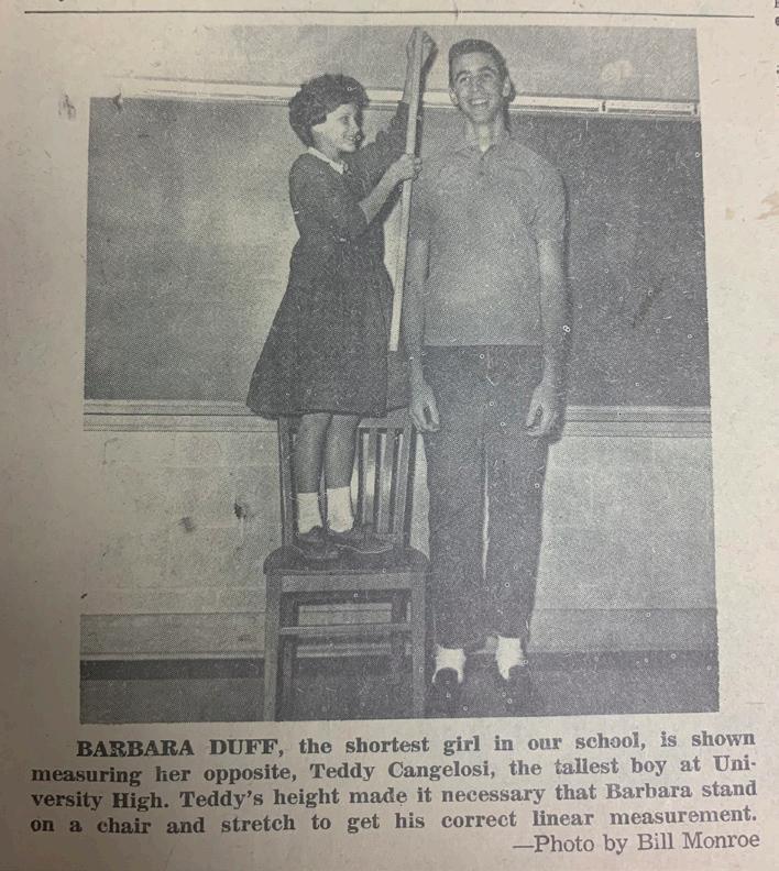 ULS parent and current ULS Foundation Board member Sean Cangelosi and his family were recently moving when they came across some U-High memorabilia handed down by Sean’s grandfather, Theo Cangelosi. “My grandfather kept all these scrapbooks that have been handed down to me since I am the last Cangelosi in Baton Rouge. I guess I have become the family historian so to speak,” jokes Sean. Included in the memorabilia is a section of the U-High newspaper, The Campus Cub, from April 1962, which features Sean’s uncle Teddy, the tallest student at U-High at the time, being measured by the shortest student. Sean and his wife Kasey have 4 children at the Lab School, Carsyn in 10th grade, Piper in 8th grade, Ruston in 5th grade and Miller in 1st grade. As a fun tribute to their Cangelosi Cub legacy, Carsyn, is pictured here being measured by her brother Miller.