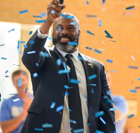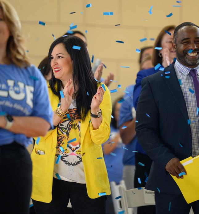 ON THE COVER: MADISON FUSILIER CELEBRATING THE NATIONAL BLUE RIBBON SCHOOL ANNOUNCEMENT. MADISON IS THE DAUGHTER OF BRITTNEY JOHNSON ‘07 AND JOHN FUSILIER AND GRANDDAUGHTER OF COACH BONITA JOHNSON.