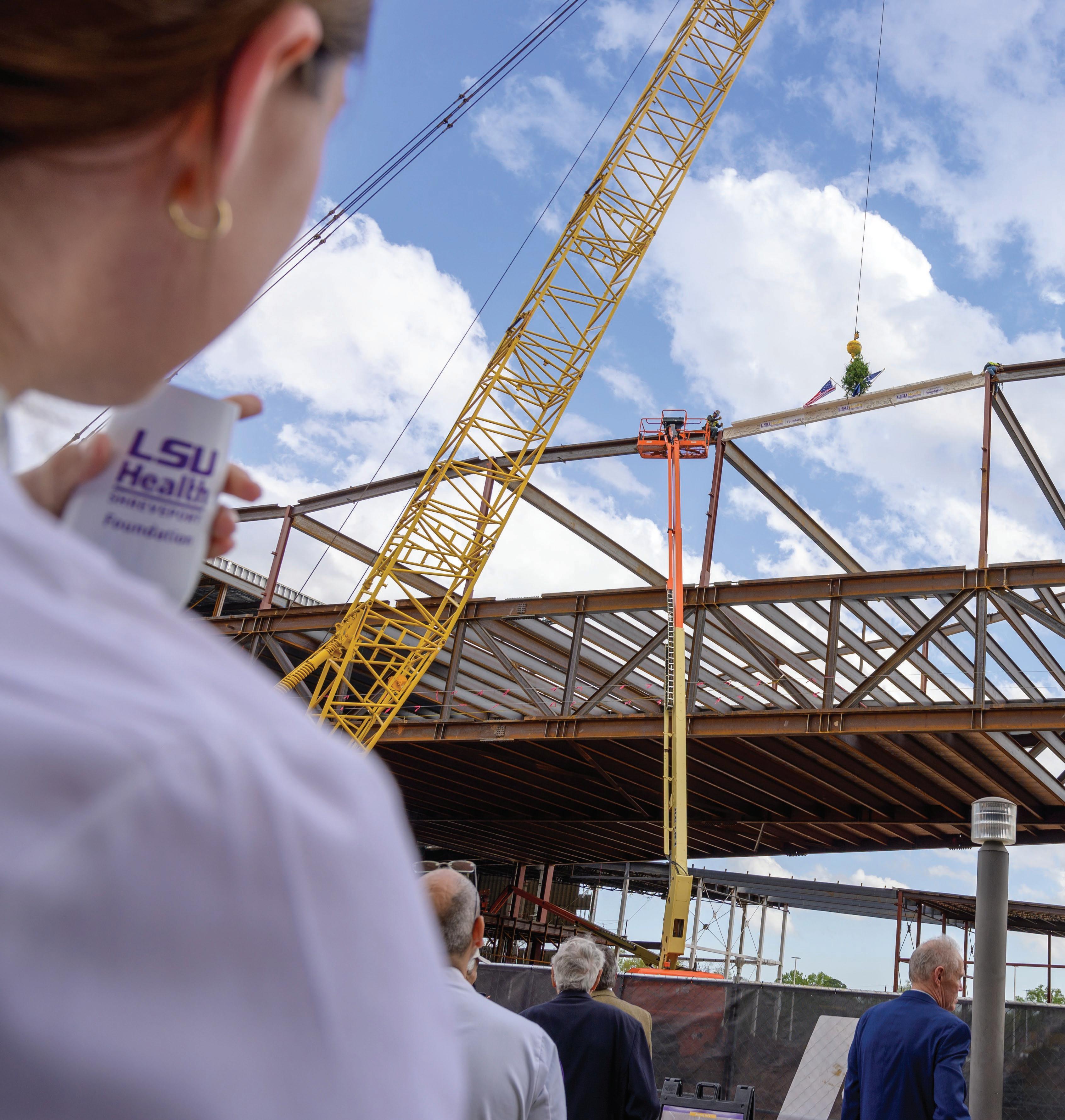 “The Center for Medical Education is a transformational project as it will not only expand our medical education and research opportunities but will create our first common gathering space for all faculty, staff, and students. We are confident this project will strengthen our recruitment of students, faculty, and staff all of which positively impact the economy of our beloved community. On behalf of our faculty staff, and students, I offer my deepest thanks to every donor, the state of Louisiana, and the federal government for their investment in this exciting project,” shared David Lewis, MD, Interim Chancellor and Dean of the School of Medicine at LSU Health Shreveport, at the Topping Out Ceremony held in March 2022.