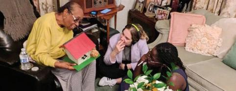 ORAL HISTORY PROJECT LSUMOA educator Callie Smith, registrar Marianna Luquette, and LSU doctoral student Sarah Nansubuga are collecting oral histories from the descendants of famed Louisiana painter Clementine Hunter. After receiving training from the University’s T. Harry Williams Center for Oral History, the team visited family in Baton Rouge and Natchitoches, Hunter’s lifelong home, preserving the memories of those who shared an intimate relationship with the painter. The Museum is also digitally archiving the paper files collected by her relatives, including family photos, articles, and letters, with the goal of providing public access to the materials.