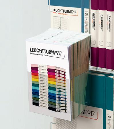 Product flyers help communicate the variety and features of LEUCHTTURM1917 notebooks at the point of sale, while also saving space.