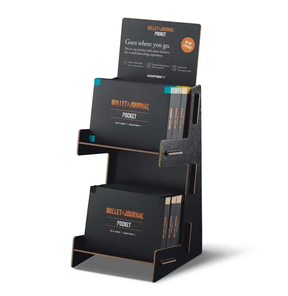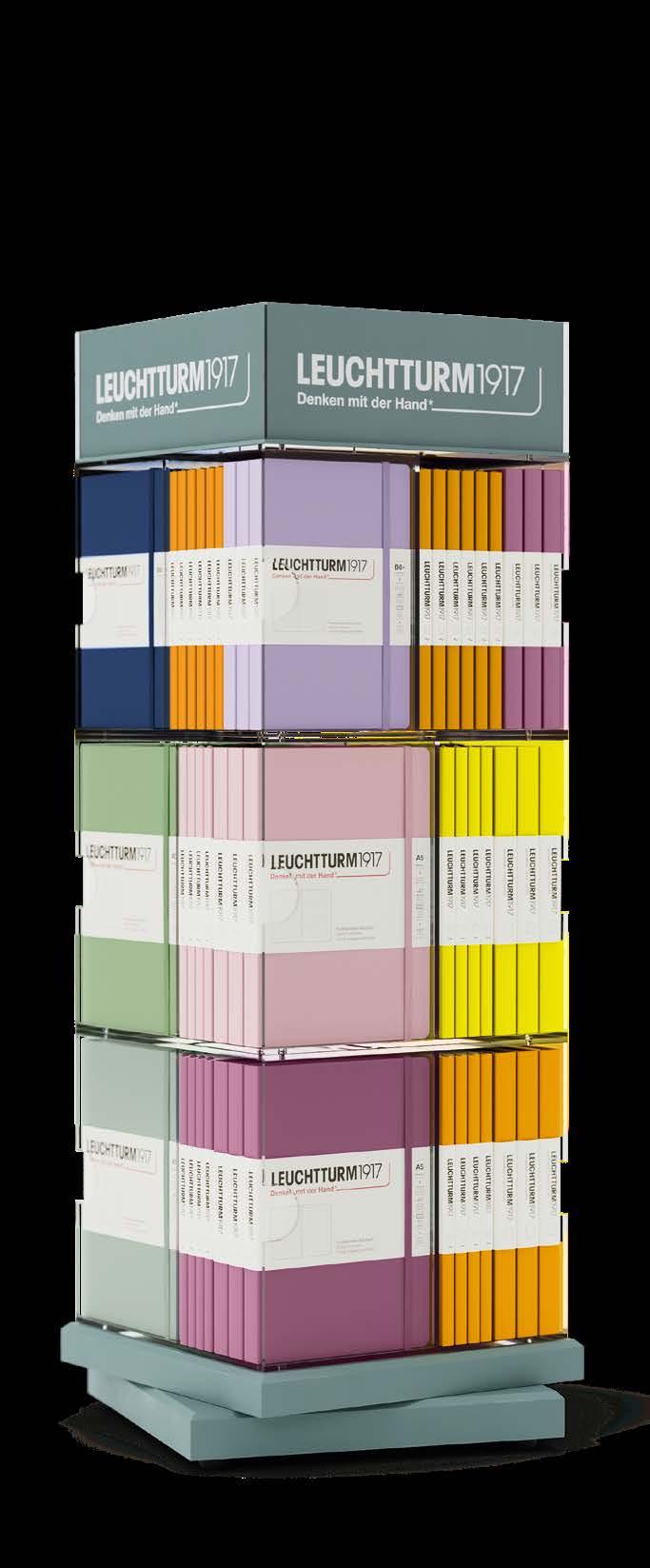 Grundlagen 138 Ladenbausysteme 140 Leuchtende Regale 140 Leuchtende Gondel 144 Buchstützen & Shelf Talker 145 Displays 146 Stand und Thekendisplays 146 Displays und POSMaterial für die neuen Farben 148 Schaufenster 150 Tisch- und Regaldisplays 152 für Notizbücher 152 für Pen Loops 155 Displays und POS-Material für den Drehgriffel 156 POS-Material 162 Bullet Journal® 162 120g Edition 164 Bauhaus Edition 165 Musterbücher 166 Aufsteller 166 Markenflyer 167 Tragetaschen 167 Poster 168 Geschenkschachteln 170