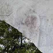 Fay made a second orange ribbon intervention which made visible the mycorrhizal web below, conversing the light and flutter above, sound and vibration was recorded in the meadow by the big barn with Jon’s parabolic shell-ona-bed.