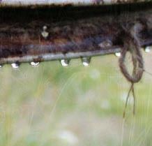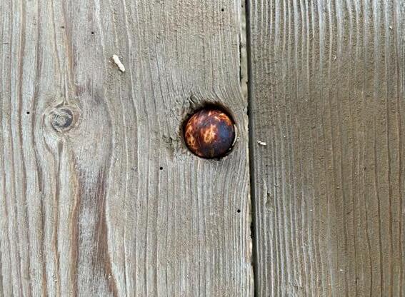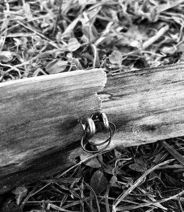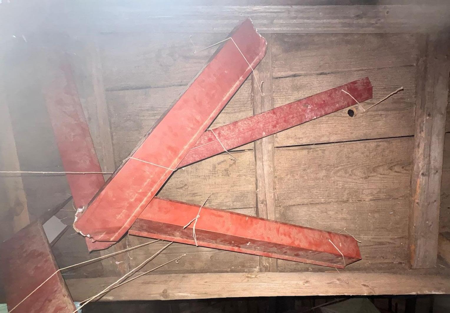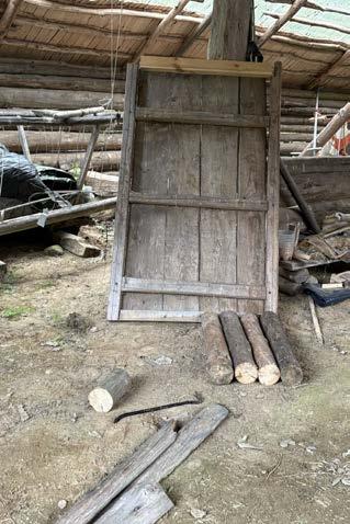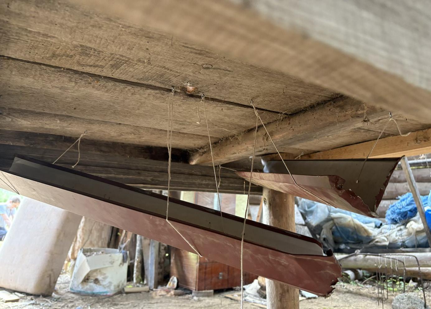 Beneath the door I was met with termite damage which created these tiny holes, which conveniently worked perfectly in my favour to twist hooks into these holes to create the guttering system for a rural pool table.