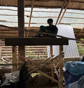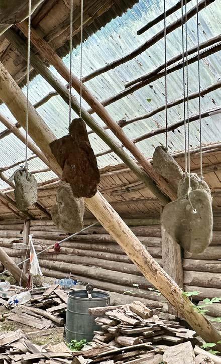 To create the final product, I used wooden roof tiles that were used in the construction of the actual barn at LT Ranch. This was to ensure that it would fit into the designated work area. To connect specific elements, such as the base, house elements, and bridge, I used metal wires, similar to those used in specialized architectural structures.