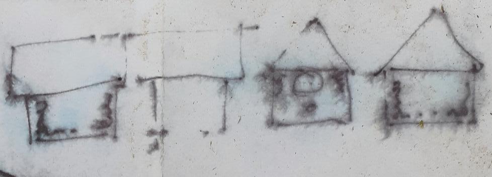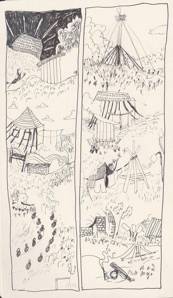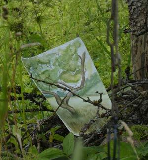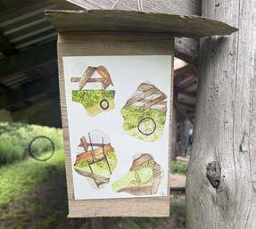 We had some projects which were situated beyond our local zones of activity.The map below attempts to roughly indicate where they are resting, some decaying some, entangling in webs over time, others to catch the wind, ripple and sound. Jos’s ‘Acoustic Boundary’, Georgia’s ‘Slow Undoing’ and Alex’s drawings. There may be a few missing but will be forgotten in their own fleeting way once gone. Fay’s Ribbons for the Returning wrapping the rural toothpick (Stork’s Nest) in the meadow.