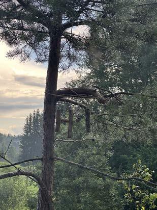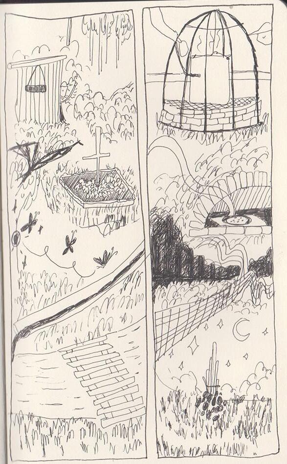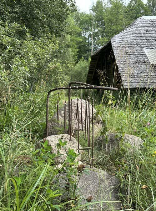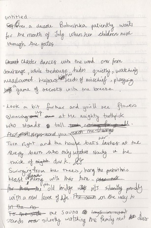 Swinging from the trees, hang the prehistoric beasts, merry with their tune- the old bridge sits proudly with a new lease of life on the way to the sauna stands silently watching the family next door on their daily evening walk.
