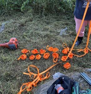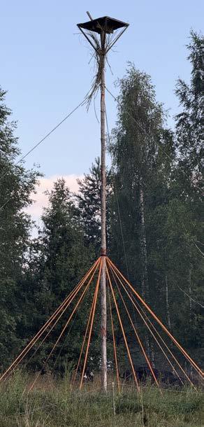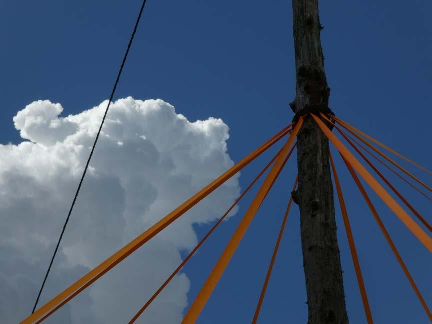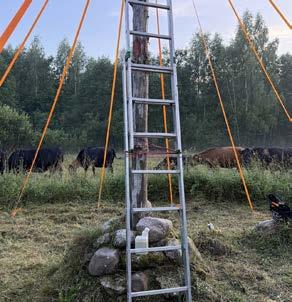 The original plan was to attach the ribbons higher up the post, at a height of 10 meters. However, this proved too difficult and impractical from a safety standpoint. Instead, I decided to install them at a more manageable height of 2.5 meters.