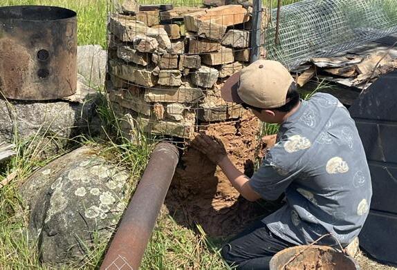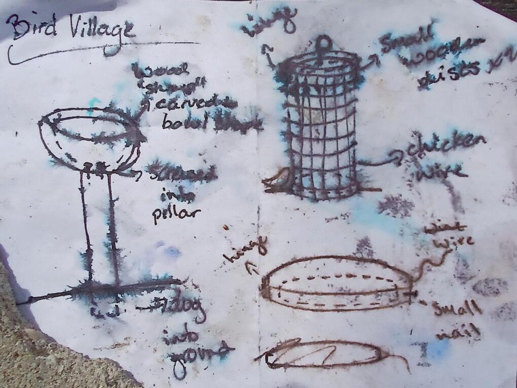 The idea for the “burn and bloom birdbath” started with an idea for a collaborated project linked with a birdhouse. In the woods surrounding the ranch, there are several sparse areas that lack hiding spots for small birds, so we came up with a plan to create a sort of bird “sanctuary”.